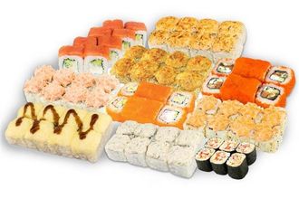 2. Калифорния сяки (в красной икре, лосось, огурец, сыр)
